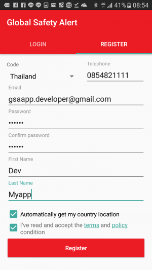 Notification Email will sent when have special case like your friend have Panic and need help from you. GSA will sent important information to email of your.
