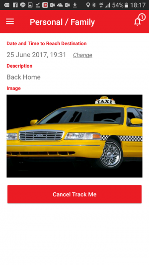 When you create Track Me then match date and time. Track Me will noise alert tone one minute you can cancel Track Me or let time end Track Me will go to overtime and change status you to Panic