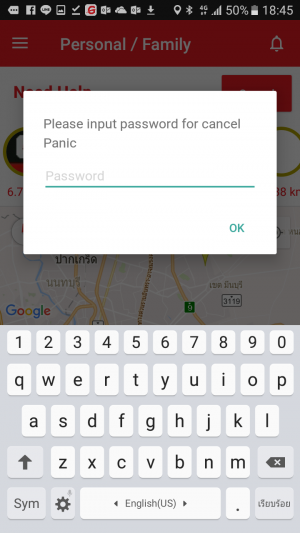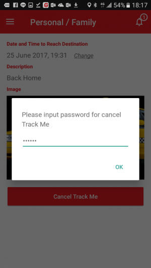 If you need to cancel Track Me. It’s need password for cancel (password same Login) if you not cancel Track Me. It’s will go to Panic Status when overtime.